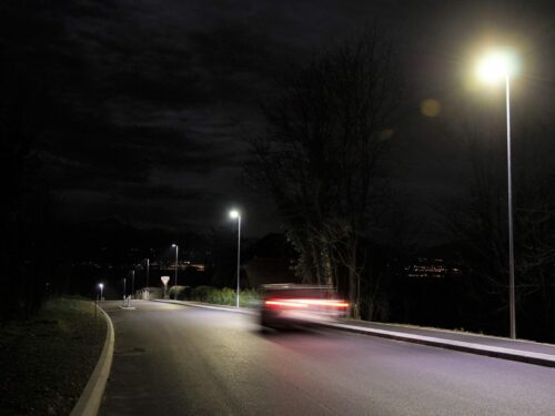 Eclairage public de la chaussée, des deux bandes cyclables et du trottoir avec des led.